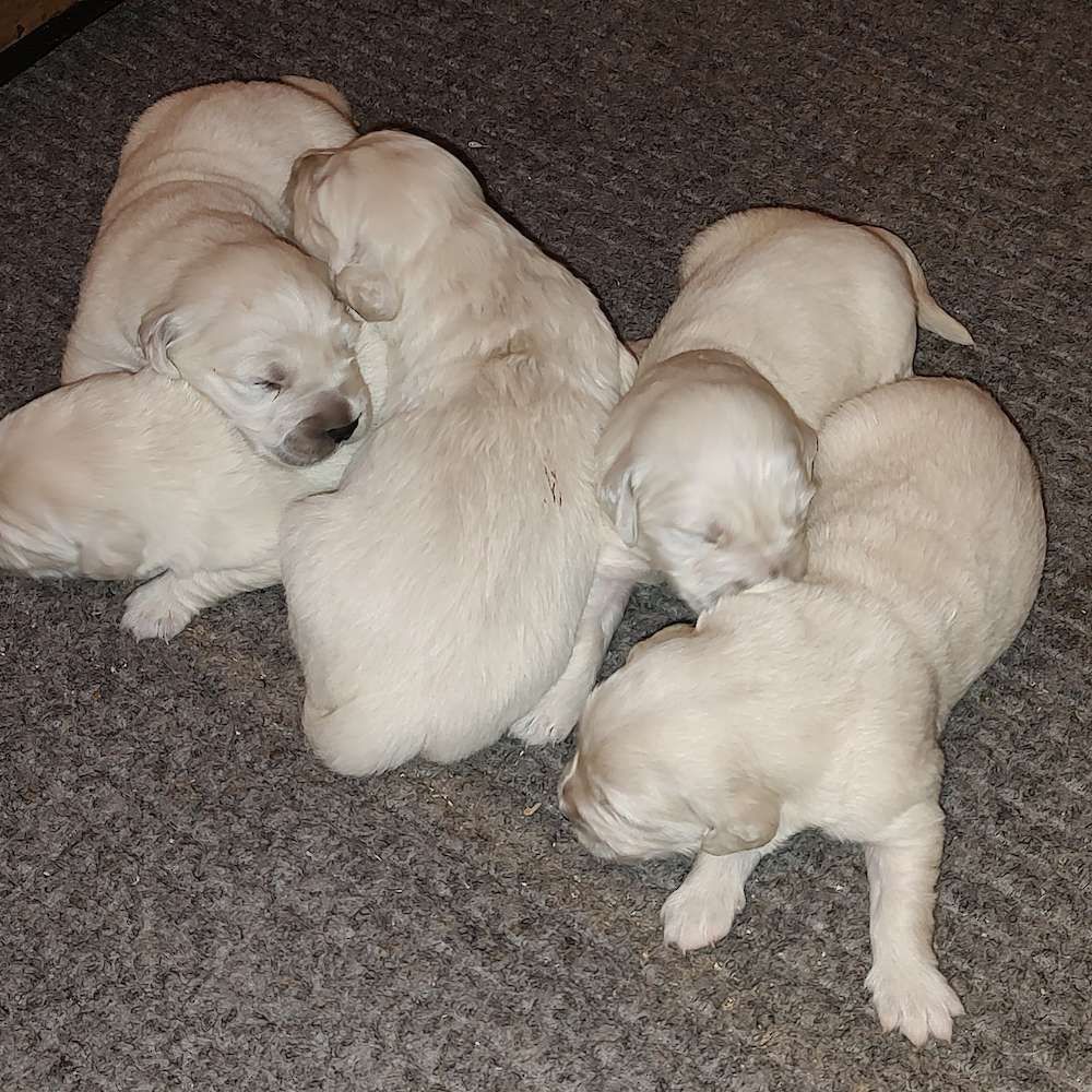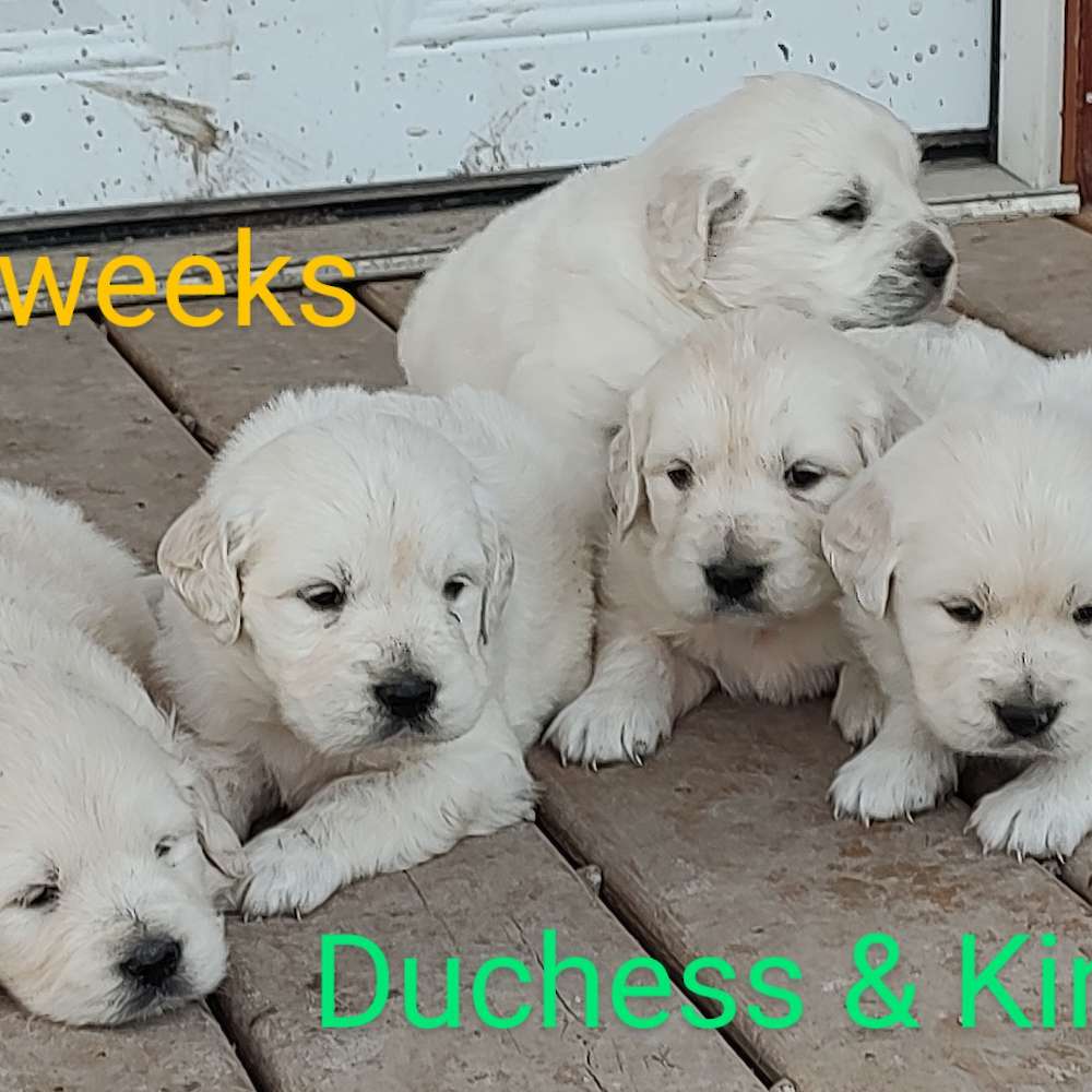 (2) Males and (3) Females Looking forward to seeing how these puppies develop. Duchess is such a sweet, lovable, docile English Cream and King is a very sweet, lovable gentle giant.