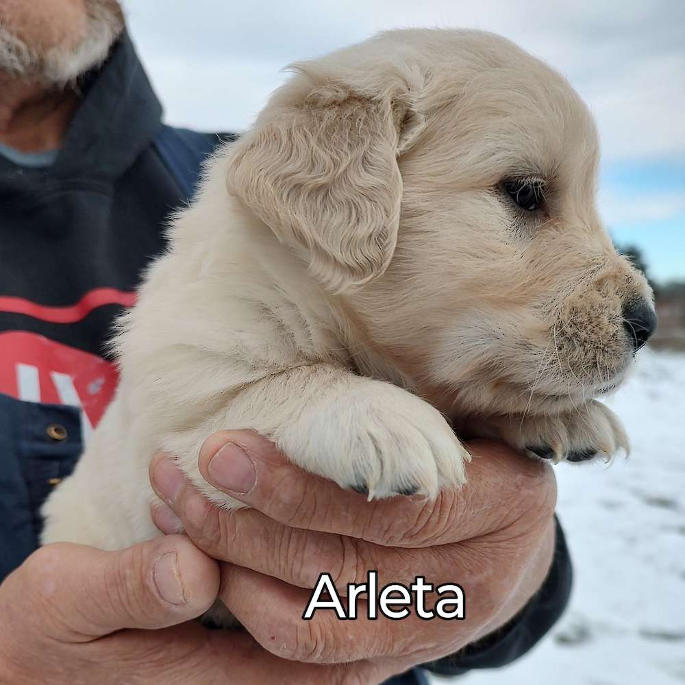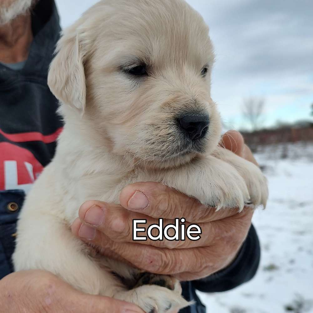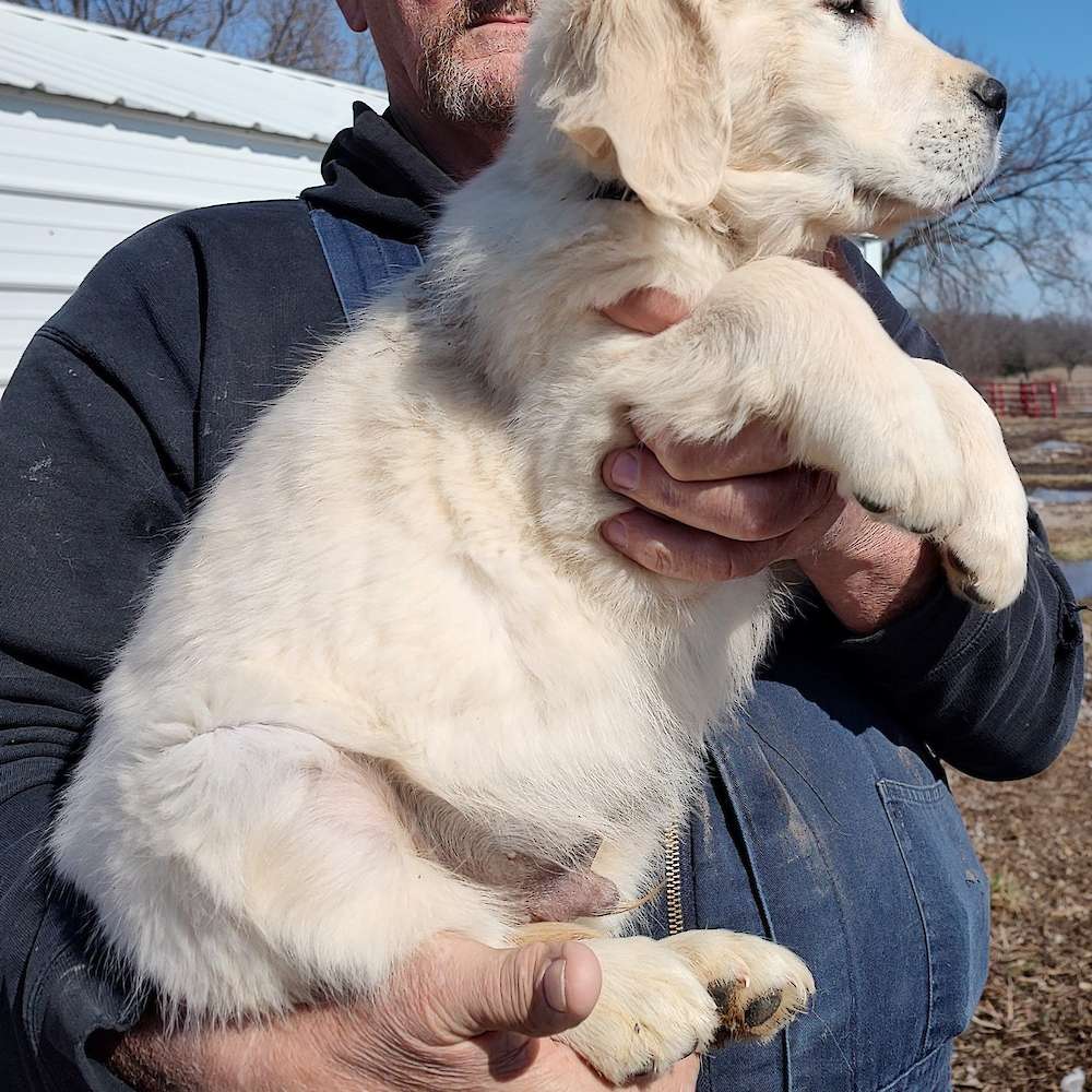 Here is a nice litter of English Cream puppies. Duchess is a very sweet, mild temperament female and Trumper is a sweet male who loves to retrieve and carry things for you. I am asking $900 each for these puppies.