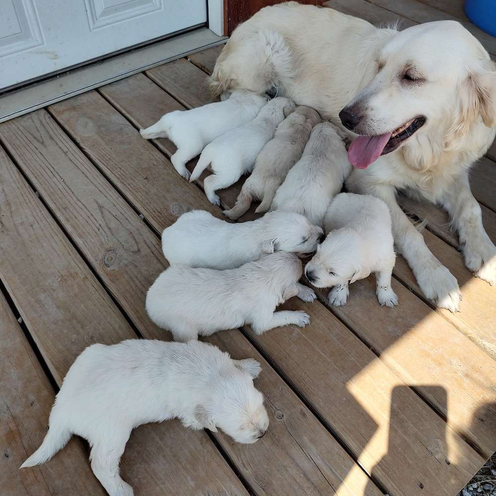 King is a beautiful majestic, very docile, sweet male. Queen is a beautiful, very calm, sweet lovable female. The puppies have a very nice blend of each parent. You won't find better puppies with great dispositions and so much love to give.